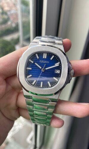Seiko Mod Nautilus – Silver with midnight blue Dial (40mm)