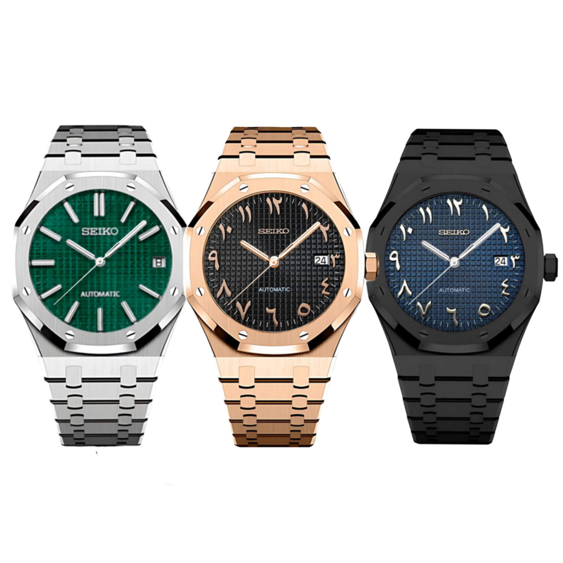 A Seiko Mod is a special watch hand-assembled from a prestigious Seiko automatic or hybrid movement, combined with high-quality aftermarket parts, usually made of 904L stainless steel.